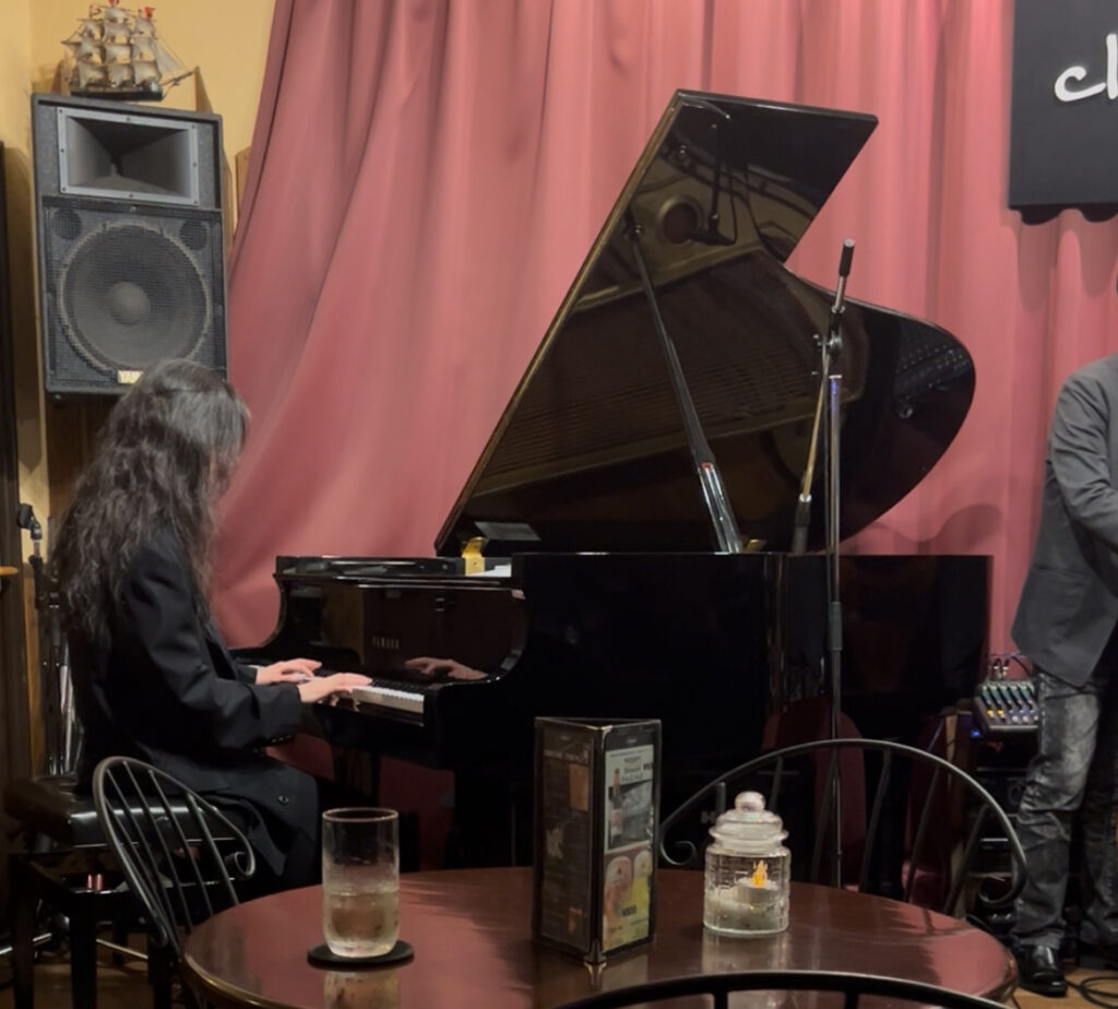 この日は、プロジャズピアニストの「川上さとみ」さんが、ウッドベースとパーカッションでJAZZ LIVEをしていました✨